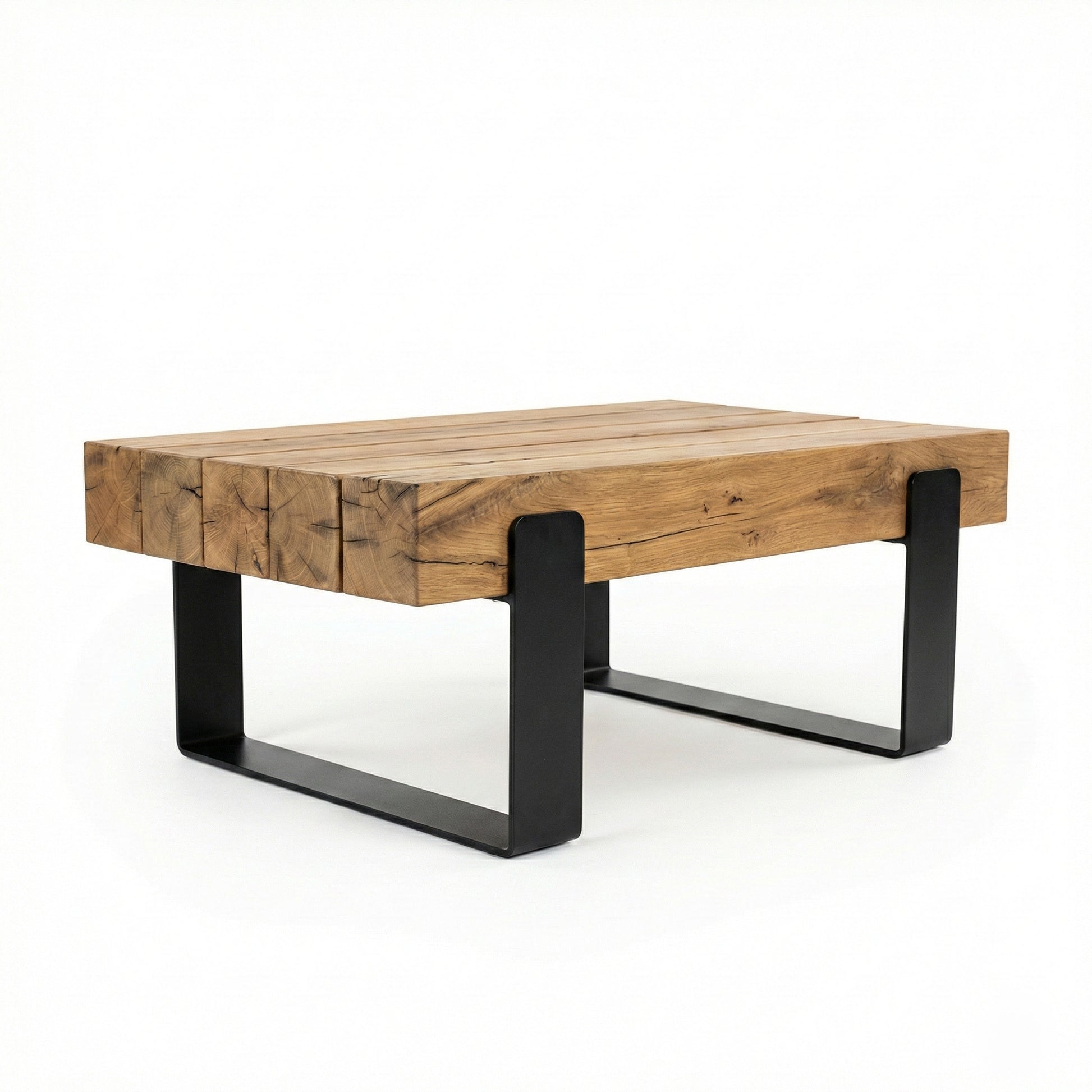 Balken Wohnzimmertisch. Kombination aus Eiche und Stahl.